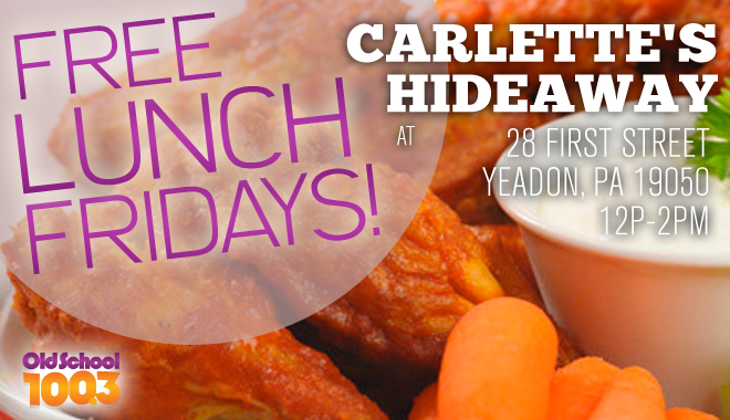 Free Lunch Fridays at Carlette’s Hideaway 28 First Street Yeadon, PA 19050